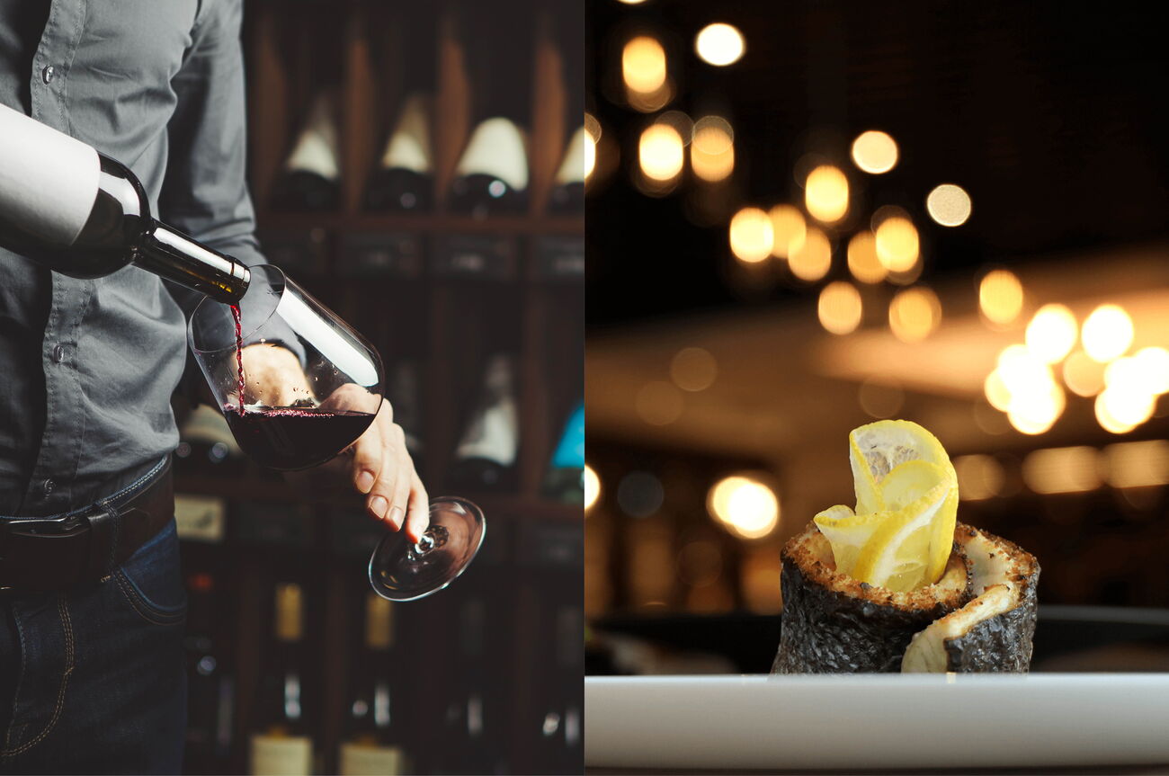 Restaurant Acasa Weinkeller: Ein Kellner zeigt dem Gast eine Flasche Wein